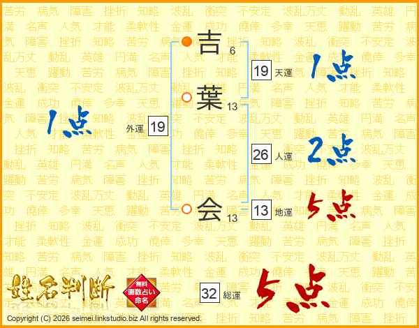 吉葉会さんの総運は32画の5点!