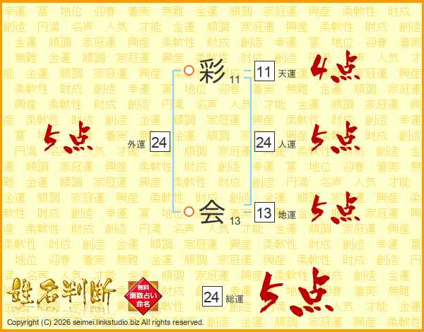 彩会さんの総運は24画の5点!