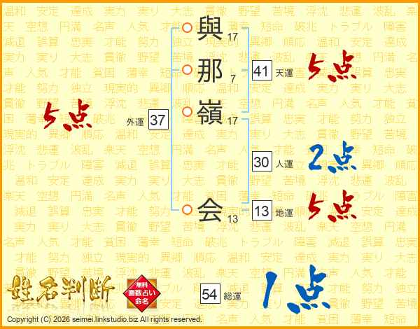 與那嶺会さんの天運は41画の5点!