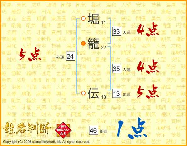 堀籠伝さんの地運は13画の5点!