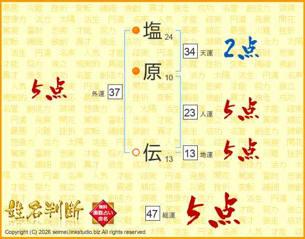 塩原伝さんの総運は47画の5点!