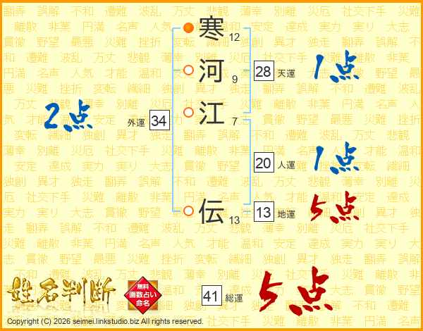 寒河江伝さんの総運は41画の5点!