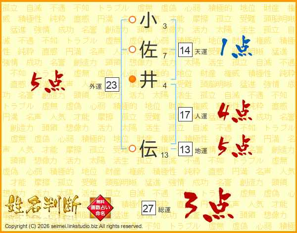 小佐井伝さんの総運は27画の3点!