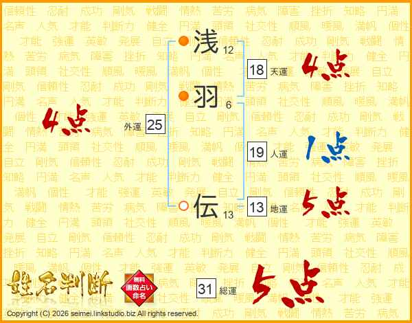 浅羽伝さんの総運は31画の5点!