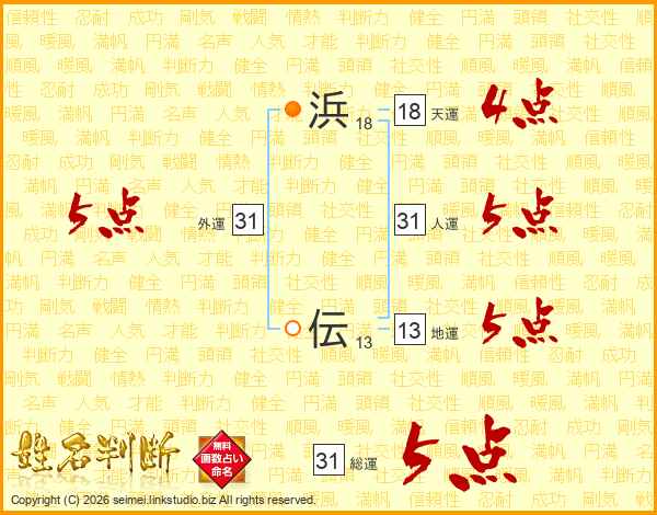 浜伝さんの総運は31画の5点!