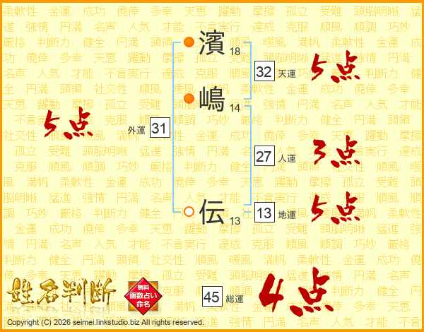 濱嶋伝さんの総運は45画の4点!