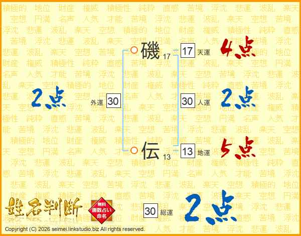 磯伝さんの総運は30画の2点!
