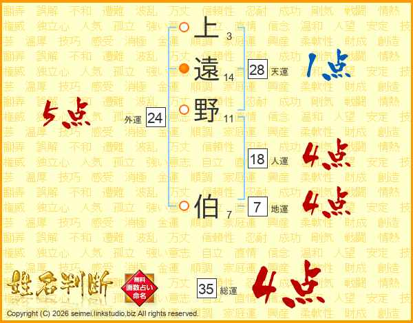 上遠野伯さんの総運は35画の4点!