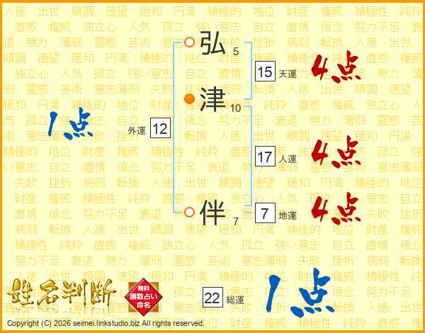 弘津伴さんの総運は22画の1点!