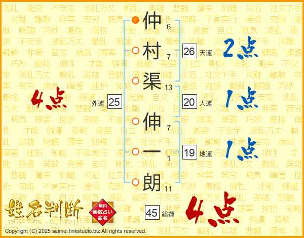 仲村渠伸一朗さんの天運は26画の2点!
