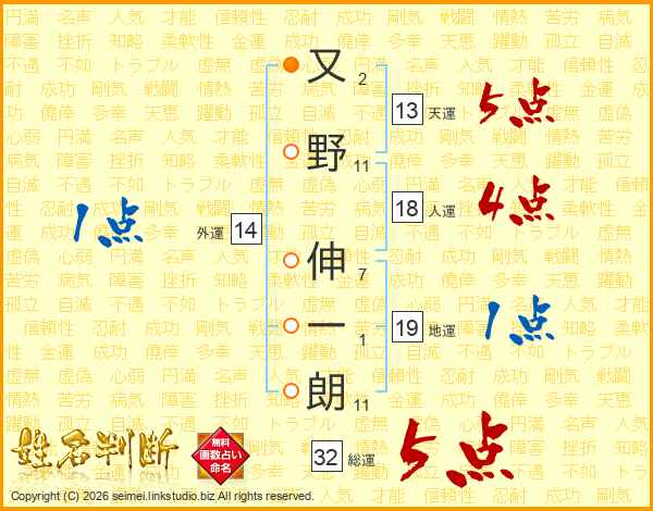 又野伸一朗さんの総運は32画の5点!