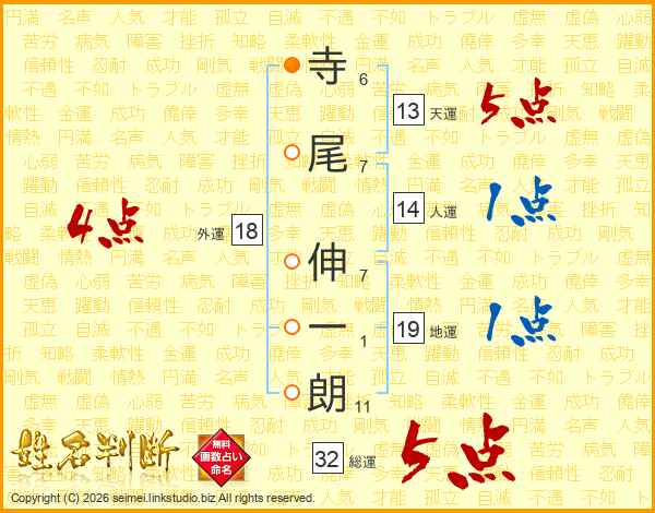 寺尾伸一朗さんの総運は32画の5点!