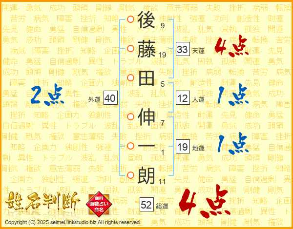 後藤田伸一朗さんの天運は33画の4点!