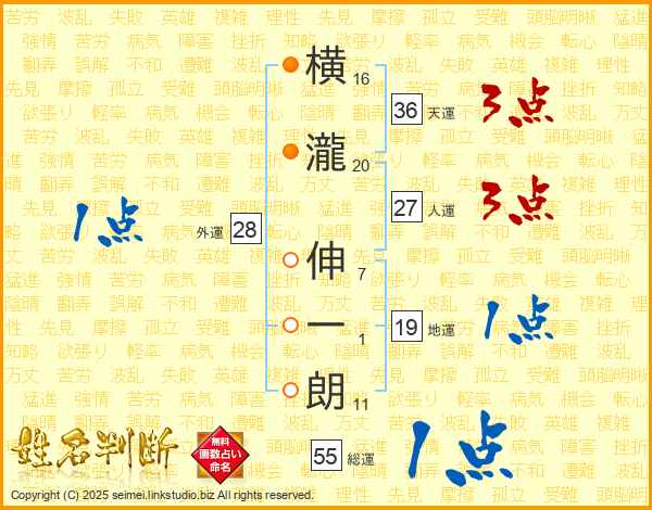 横瀧伸一朗さんの総運は55画の1点!
