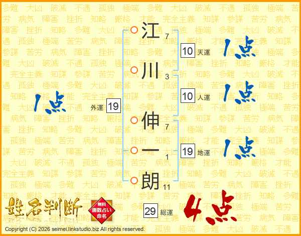 江川伸一朗さんの総運は29画の4点!