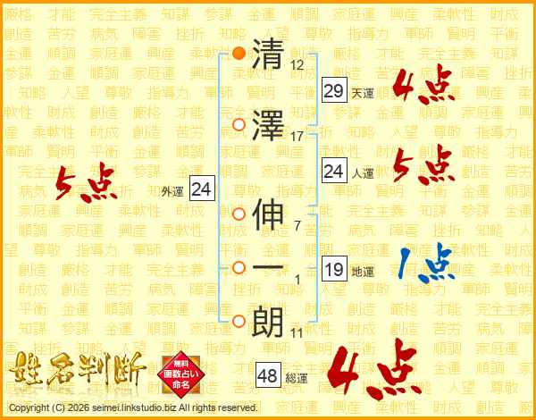清澤伸一朗さんの総運は48画の4点!