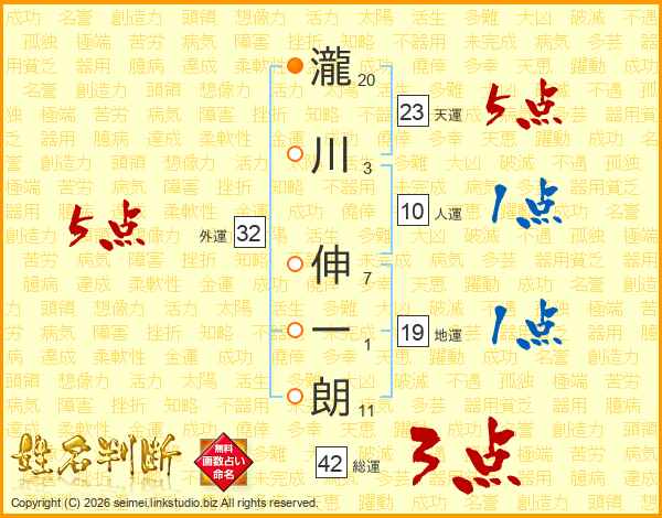 瀧川伸一朗さんの外運は32画の5点!