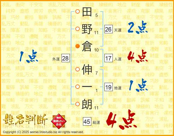 田野倉伸一朗さんの総運は45画の4点!