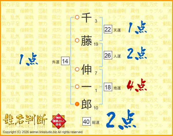 千藤伸一郎さんの人運は26画の2点!