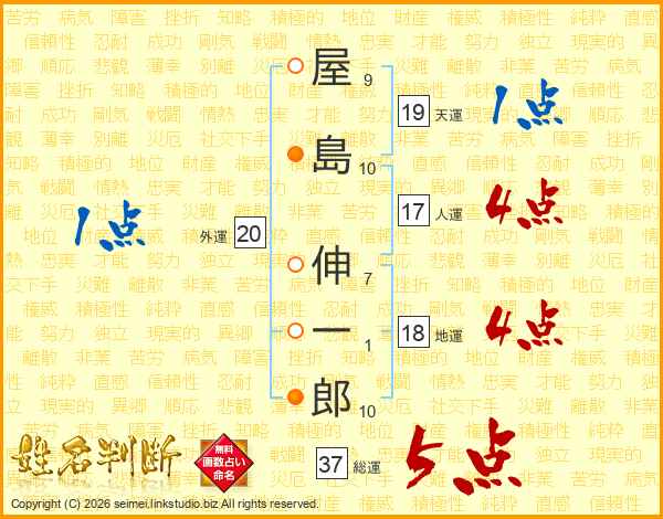 屋島伸一郎さんの総運は37画の5点!