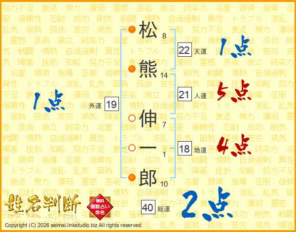 松熊伸一郎さんの人運は21画の5点!