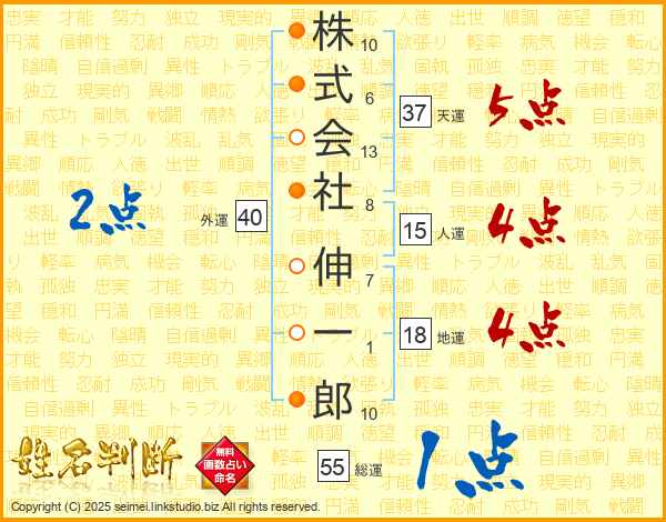 株式会社伸一郎さんの天運は37画の5点!
