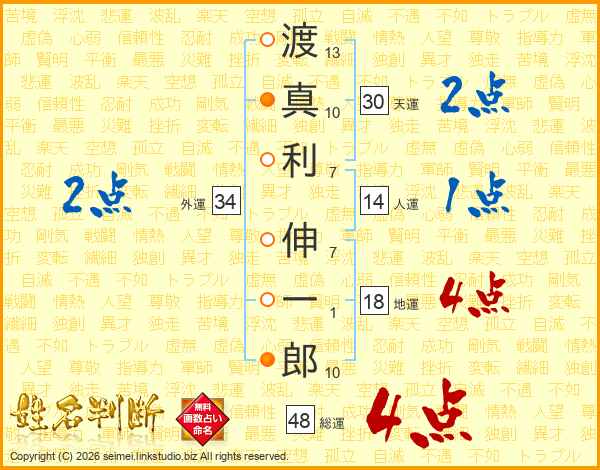 渡真利伸一郎さんの人運は14画の1点!