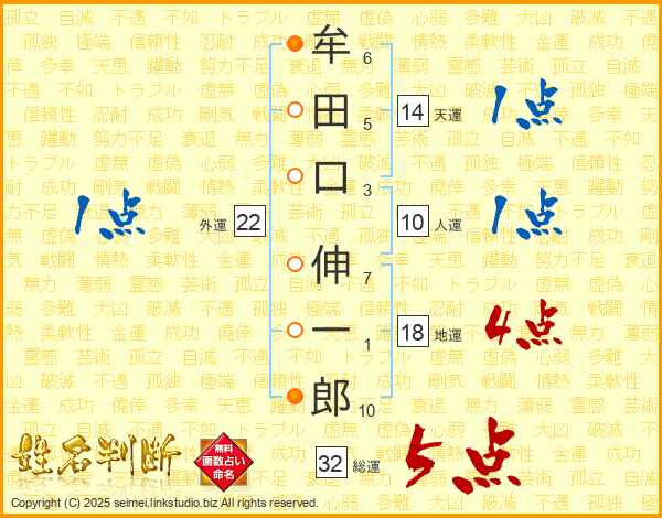 牟田口伸一郎さんの総運は32画の5点!