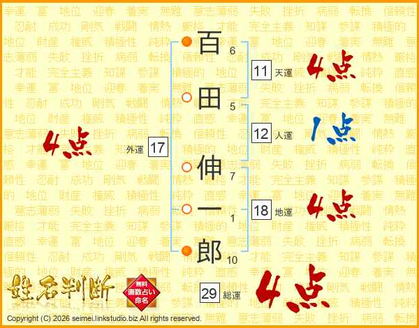 百田伸一郎さんの総運は29画の4点!