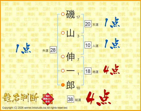 磯山伸一郎さんの総運は38画の4点!