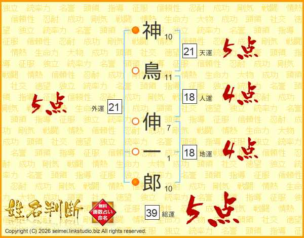 神鳥伸一郎さんの総運は39画の5点!
