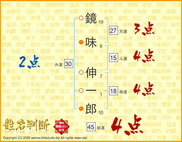 鏡味伸一郎さんの総運は45画の4点!
