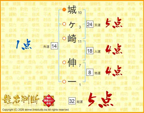城ヶ崎伸一さんの総運は32画の5点!