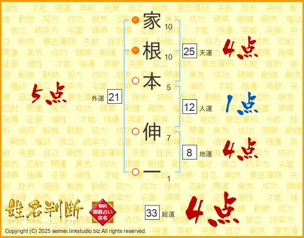家根本伸一さんの総運は33画の4点!