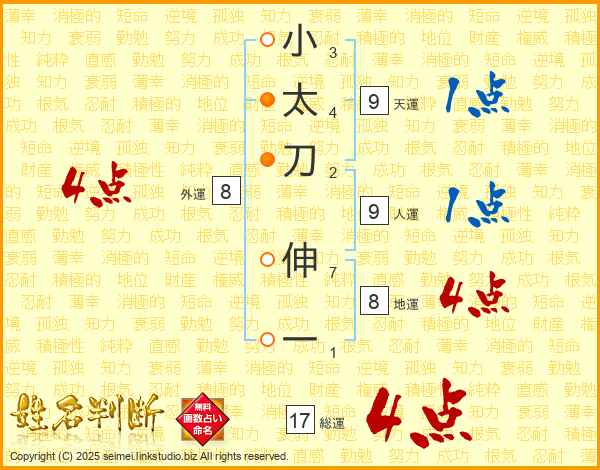 小(3画)太(4画)刀(2画) 伸(7画)一(1画)