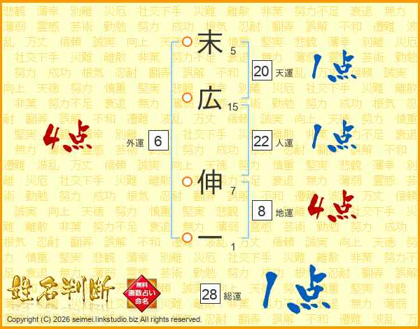 末広伸一さんの総運は28画の1点!