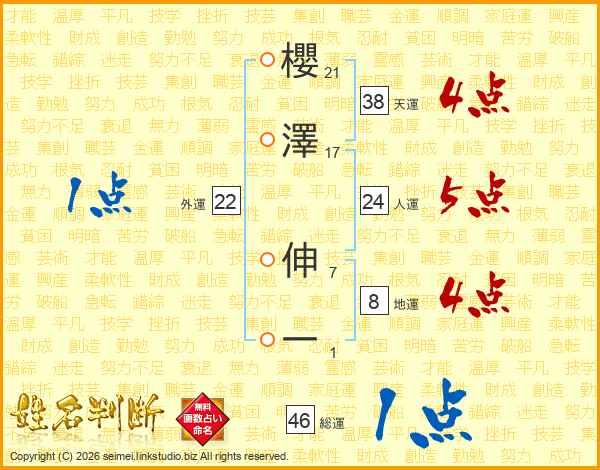 櫻(21画)澤(17画) 伸(7画)一(1画)