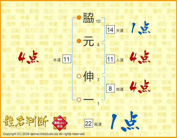 脇元伸一さんの人運は11画の4点!
