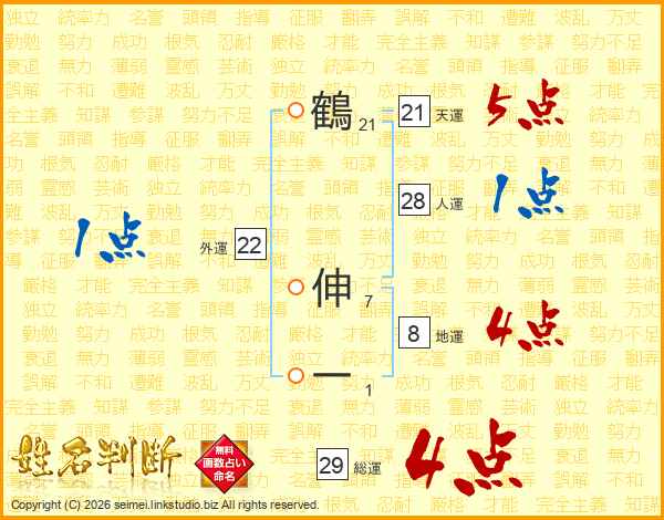 鶴伸一さんの総運は29画の4点!