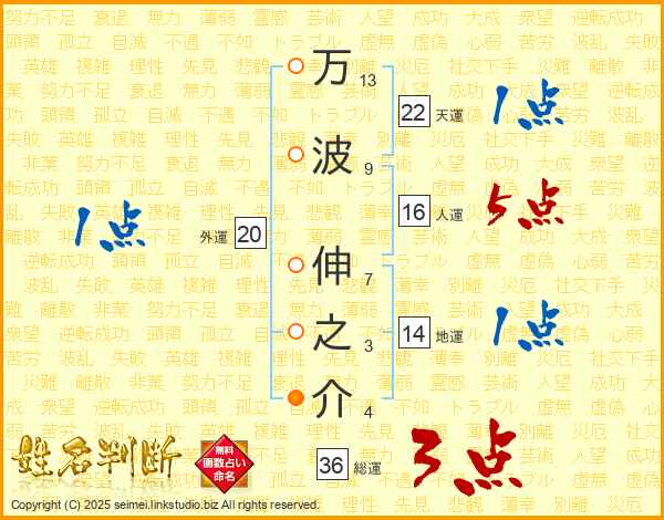 万(13画)波(9画) 伸(7画)之(3画)介(4画)