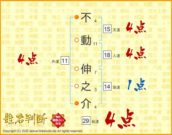 不動伸之介さんの総運は29画の4点!