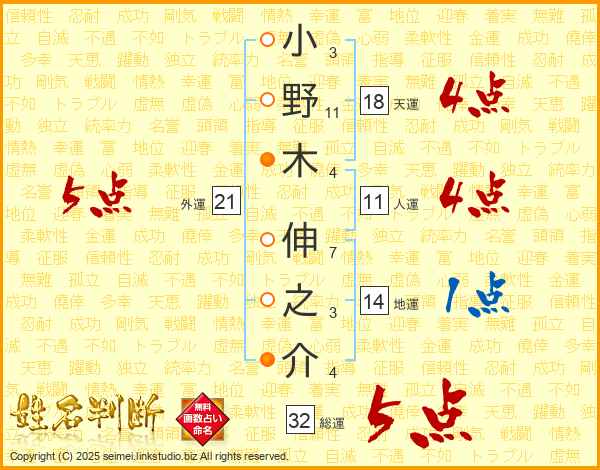 小野木伸之介さんの総運は32画の5点!