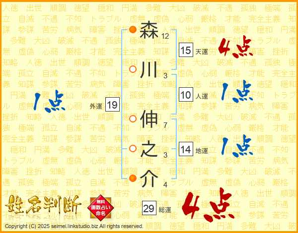 森(12画)川(3画) 伸(7画)之(3画)介(4画)