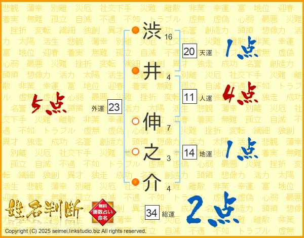 渋(16画)井(4画) 伸(7画)之(3画)介(4画)