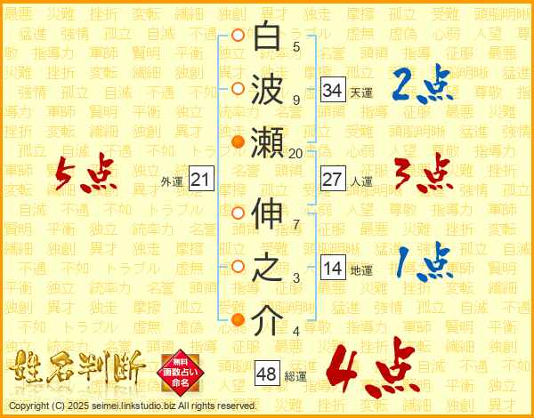 白波瀬伸之介さんの総運は48画の4点!
