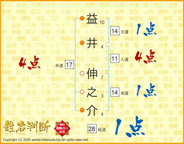 益井伸之介さんの天運は14画の1点!