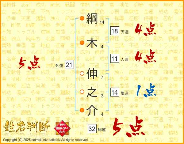 綱木伸之介さんの総運は32画の5点!