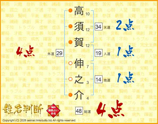 高須賀伸之介さんの総運は48画の4点!