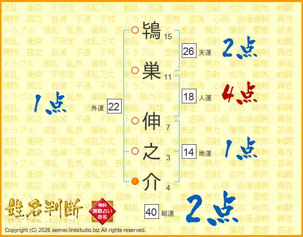 鴇巣伸之介さんの天運は26画の2点!