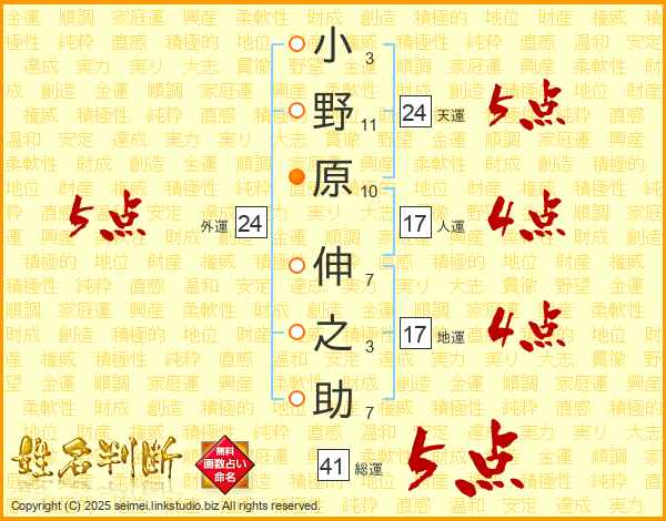 小野原伸之助さんの総運は41画の5点!